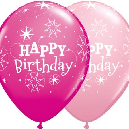 Happy Birthday Dark Pink & Light Pink Qualatex 11inch Latex Balloons with white print. Pack of 6